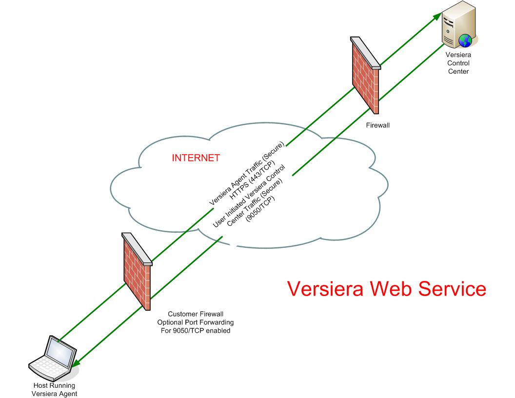 • Versiera management and monitoring services can be used over the Internet from anywhere. Remote computer agents push information to the central system and accept tasks to be performed across the enterprise.